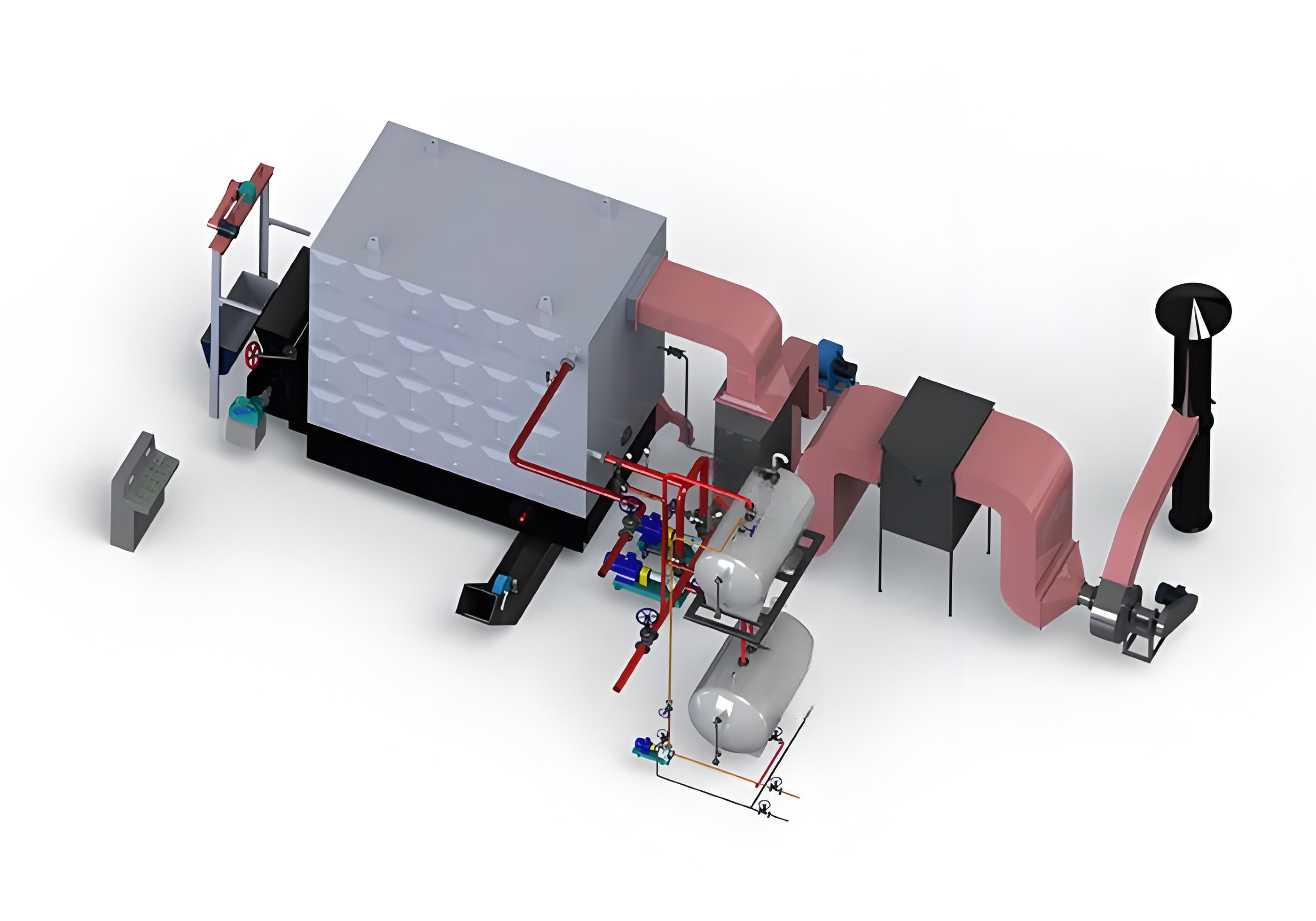 | Boiler Body and Chain Grate The horizontal chain grate coal-fired thermal oil boiler consists of an upper body and a lower grate. It is designed for easy and quick installation—simply joining the two sections together—significantly reducing installation time and cost for users. |