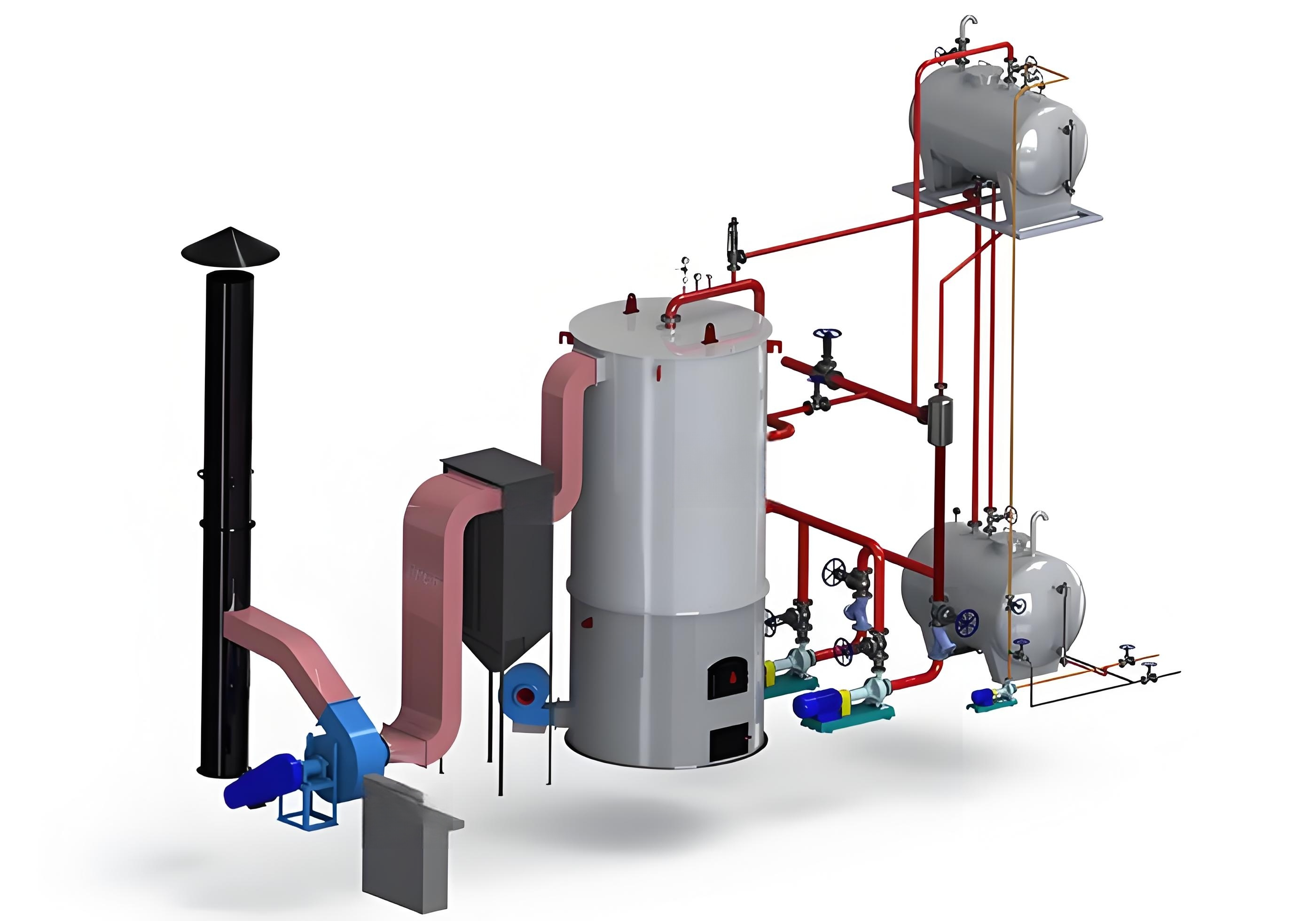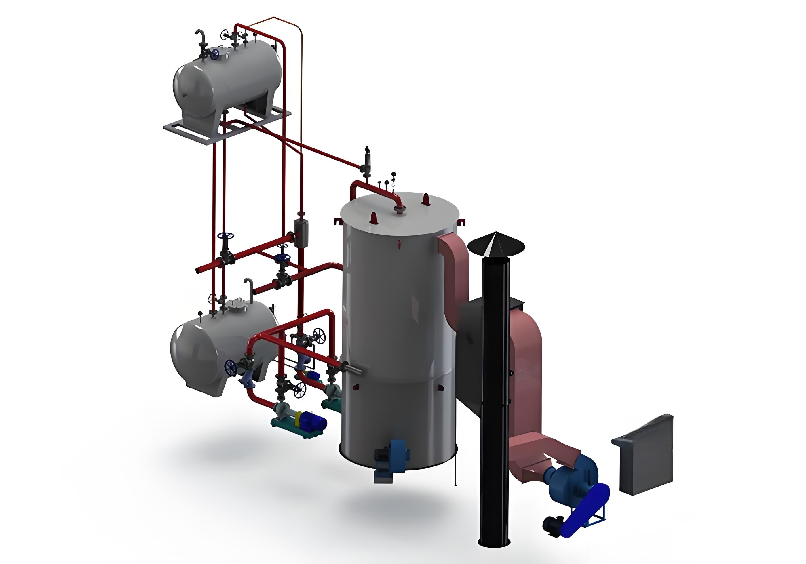 The boiler's heating surface utilizes tightly arranged coils, providing ample heat transfer area. This configuration effectively lowers the thermal load on the pipes, ensuring safer operation of the heat-conducting oil medium. | |