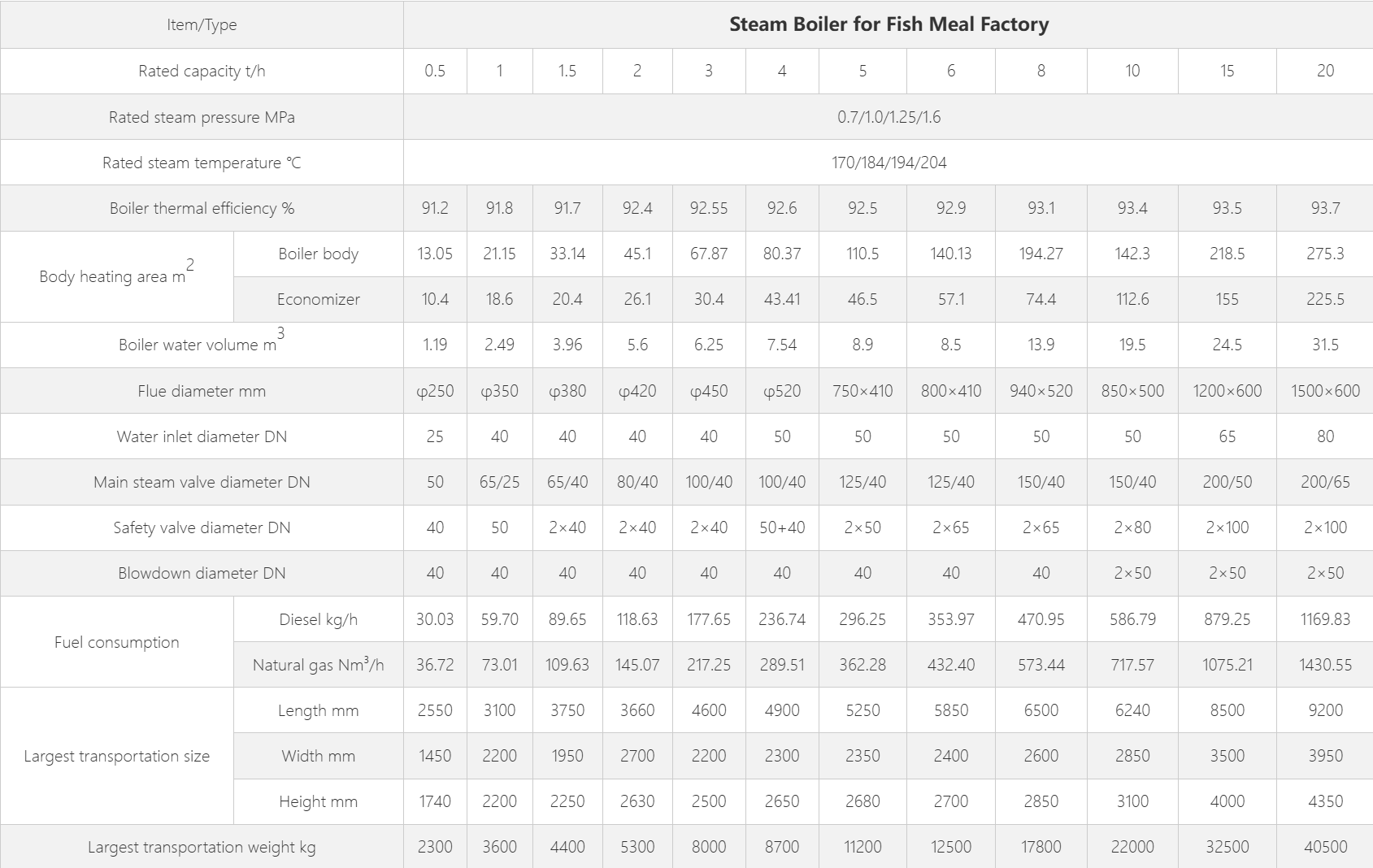 Boiler type: Three Pass Steam Boiler for Fish Meal Factory Boiler fuel: fuel oil, diesel, gasoline, heavy oil, LPG, Natural Gas, etc. Boiler Features: Customized according Fish Meal Production Process, Reliable, Durable, Fuel Saving. Boiler Service: Installation Instruction, Commissioning Instruction, Useing Instruction.